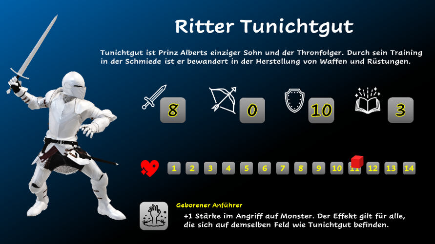 Jeder Charakter ist einzigartig und besitzt einen anderen Effekt. Je stärker der Effekt sich auf das Spiel auswirkt, desto höher ist die Wertungszahl der Karte.