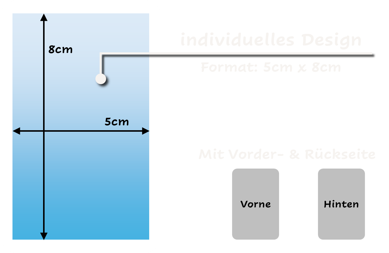 Deine Spielkarten kannst du mit individuell designter Vorder- und Rückseite von uns fertigen lassen. Natürlich bekommst du nicht einfach ausgedruckte Fotos, sondern richtige Spielkarten im Format 6cm x 9cm mit einem ca. 5mm breiten Rand. Erstelle also bitte rechteckige Layouts mit einer Kantenlänge von 5cm x 8cm (Format entspricht der Spielkarte ohne Rand).